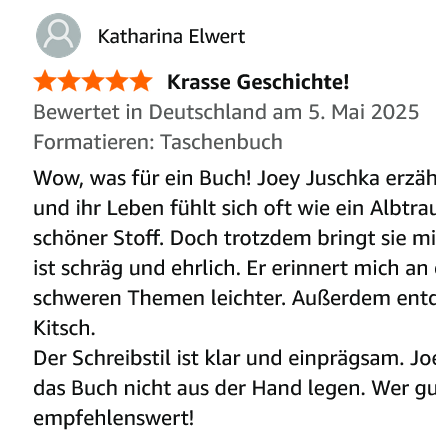 Mehr von Joey J – also von mir – gibt’s auch per Mail: per Newsletter in deinen Posteingang. Zur Begrüßung gibt’s gar einen ganzen Roman!